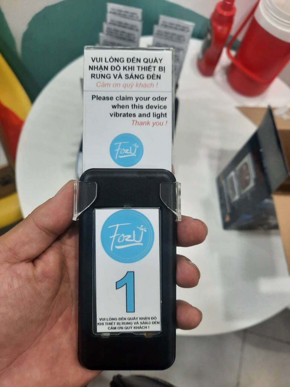 – Đưa thiết bị cho khách hàng đang chờ, khách hàng có thể thư giãn hoặc đi xung quanh và quay lại khi thiết bị gọi thông báo cho khách hàng