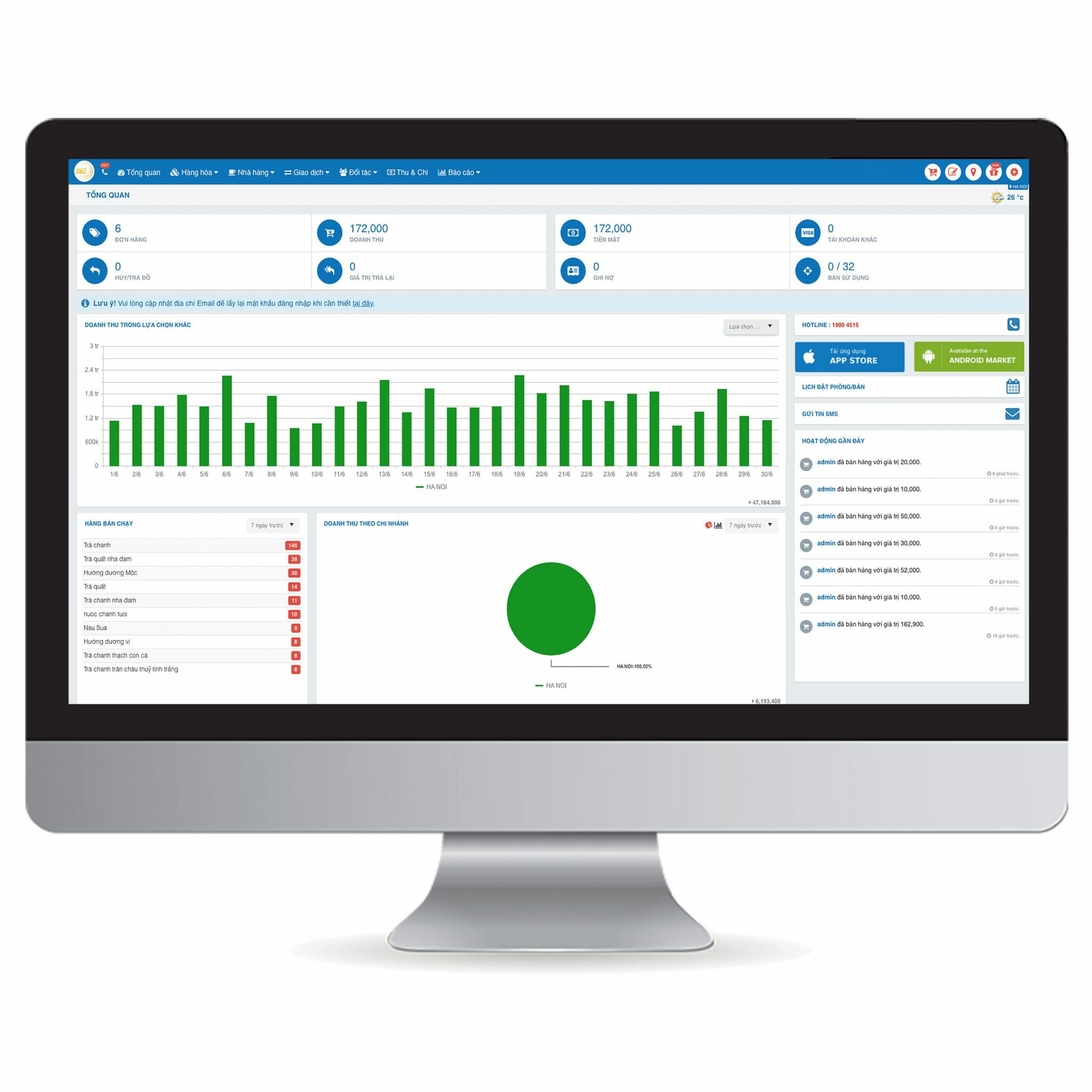 Ngay cả khi bạn đi công tác xa, phần mềm quản lý bán hàng FPOS vẫn báo tất cả hoạt động kinh doanh qua máy cá nhân của bạn. Khách hàng đến khi nào, order món gì… thanh toán hình thức nào, đều được phần mềm FPOS thông báo ngay lập tức đến bạn giống như một nền tảng xã hội rất dễ hiểu. Điều này sẽ giúp chủ quán kiểm soát doanh thu, tránh những thất thu không cần thiết hoặc giải quyết các vấn đề kịp thời.